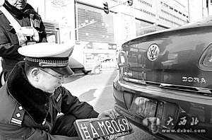不按規(guī)定安裝號牌18名駕駛?cè)吮挥?2分“史上最嚴(yán)交規(guī)”實(shí)施后,盡管對故意遮擋、污損、不按規(guī)定安裝號牌的交通違法行為,駕駛?cè)艘淮斡?2分,但仍有駕駛?cè)艘陨碓嚪ā.?dāng)天下午,城關(guān)交警大隊(duì)在南關(guān)十字等地設(shè)立了4處交通違法查處點(diǎn),查處甘AS844*、甘AA151*、京PPV61*、甘AU251*等8輛車不按規(guī)定安裝號牌,對這8名司機(jī)駕照被一次性記12分,并處以罰款。17時(shí)許,在西站十字,七里河交警大隊(duì)執(zhí)勤民警發(fā)現(xiàn)一輛車號甘AM806*的轎車安裝了活動號牌架,當(dāng)場責(zé)令駕駛?cè)瞬鸪徊︸{駛?cè)藙⒛程幰?00元、記12分的處理。當(dāng)天下午,共有18名駕駛?cè)艘虿话匆?guī)定安裝號牌被記12分。