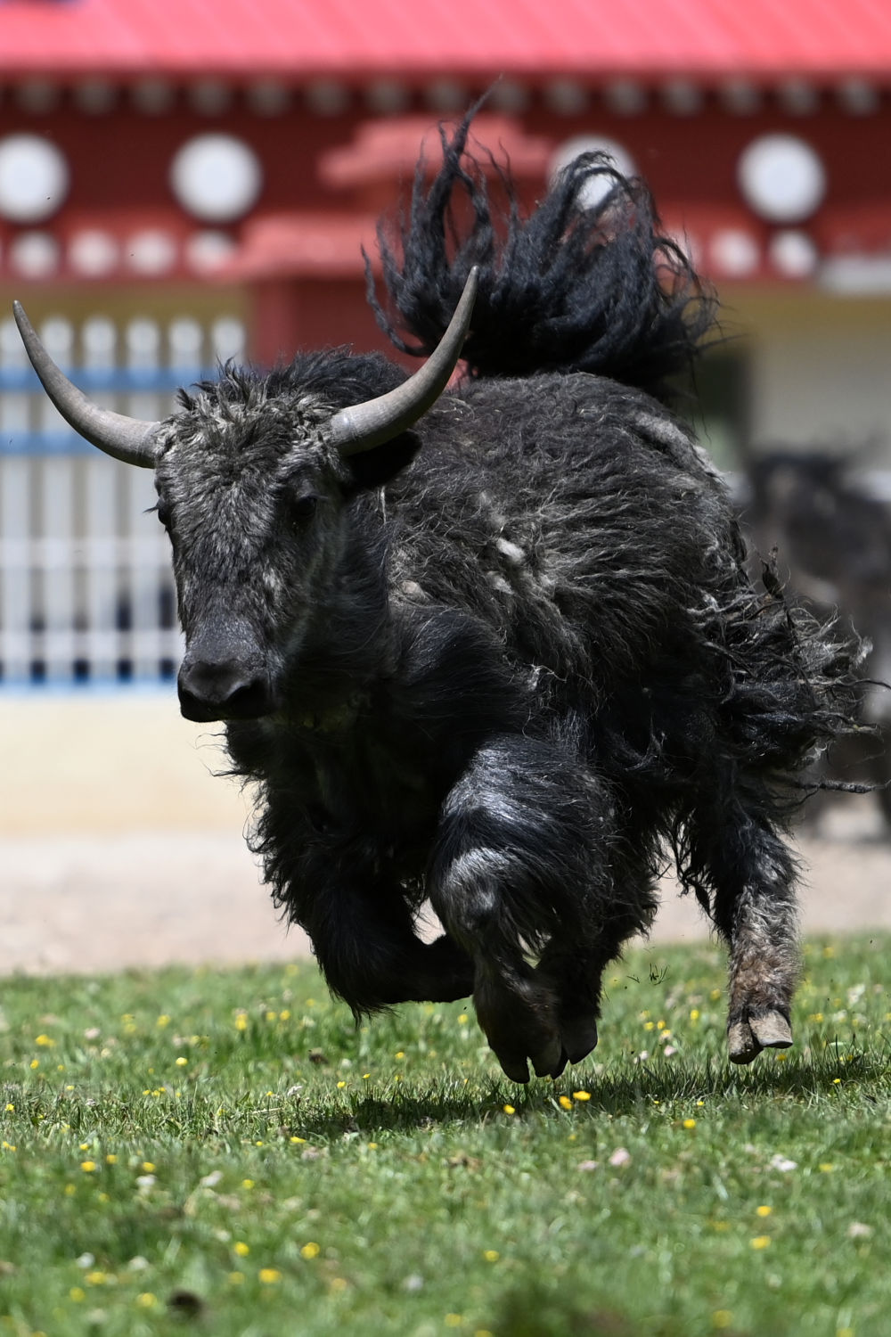 這是7月4日在玉樹藏族自治州稱多縣歇武鎮牧業村拍攝的牦牛。新華社記者范培珅攝