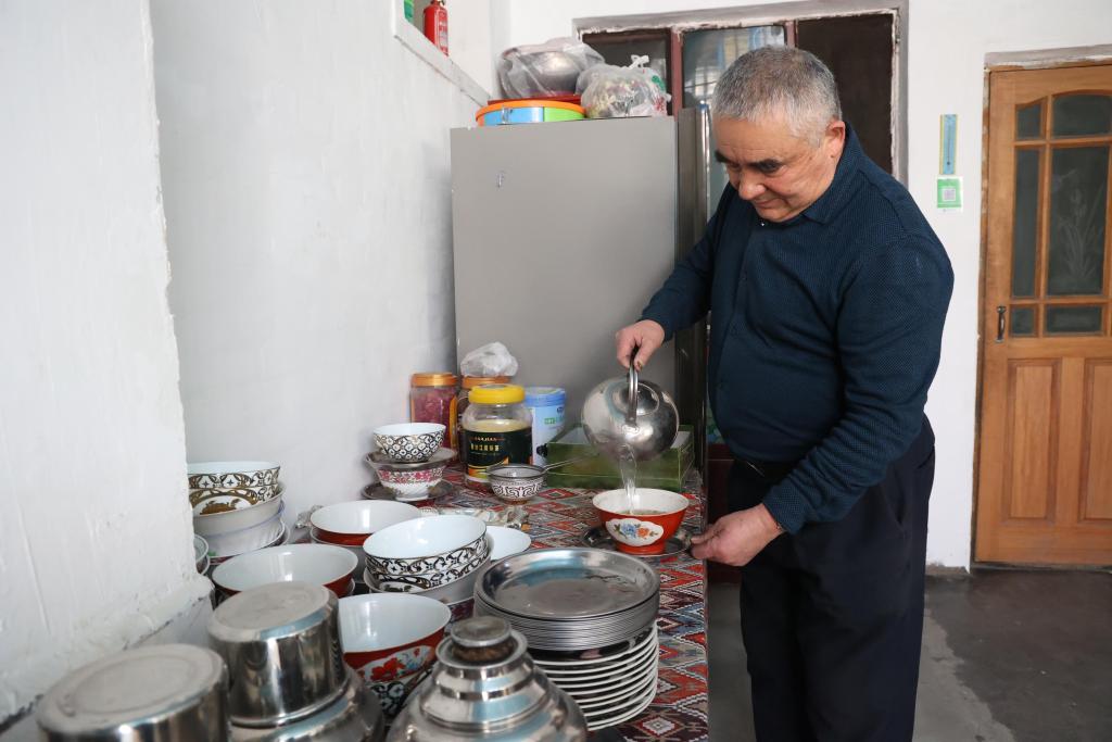 3月15日,阿布都卡德·買木提明在家庭茶館制作玫瑰花茶。新華社記者 張瑜 攝