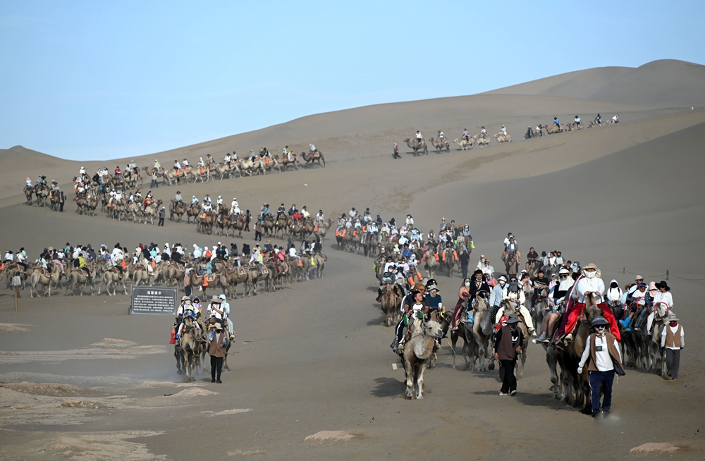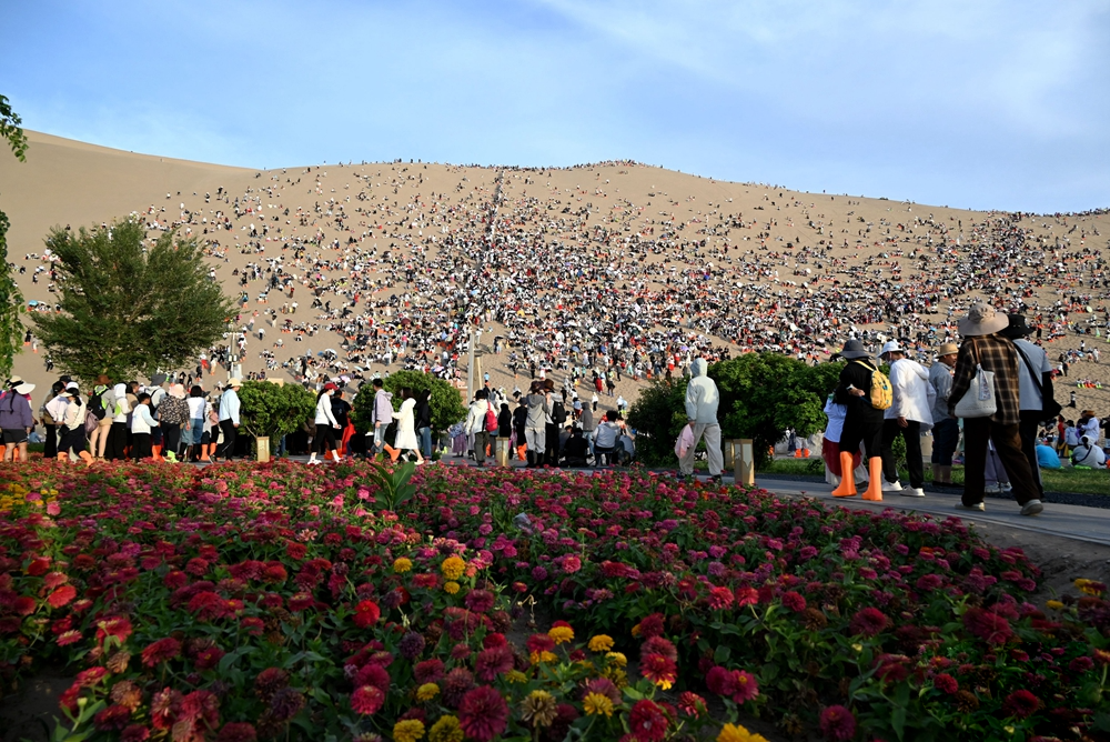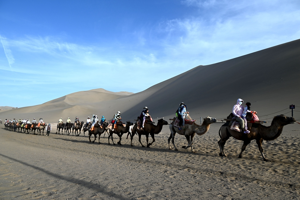 隨著暑期的到來,眾多游客走進甘肅省敦煌市,領略大漠風情,感受西北大地獨有的雄渾與神奇。新華網發(張曉亮攝)