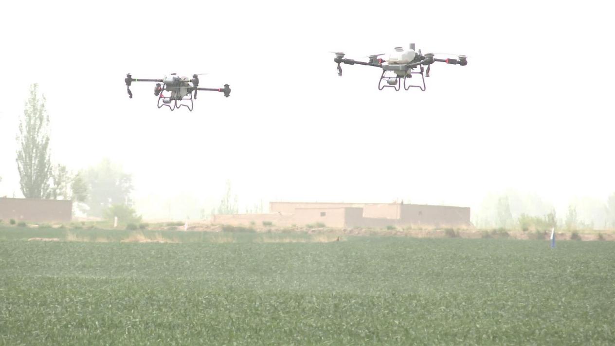 永昌縣豐澤園農民種植專業合作社負責人張琰忠:我們的冬小麥現在已經進入拔節麥穗期,也是高產的一個關鍵環節,現在葉面噴施的分幾個部分,一個是營養部分,有氨基酸有尿素有二氫鉀之類的,也有抗逆的,比如說殺菌劑。今年的天氣高溫低溫變化多,作物容易生病,所以提前預防,可以為將來的高產奠定一個基礎。使用植保無人機最大的好處就是快,正常情況下兩臺機器每天能噴一千畝地,同時,對田間莊稼苗的損傷幾乎為零,這也是增加產量的關鍵。