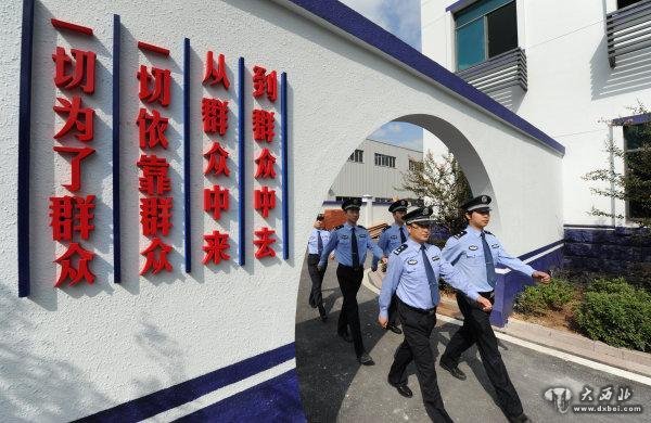 諸暨市公安局楓橋派出所外墻上的“群眾”兩字是人民警察的工作要求。新華社王小川攝