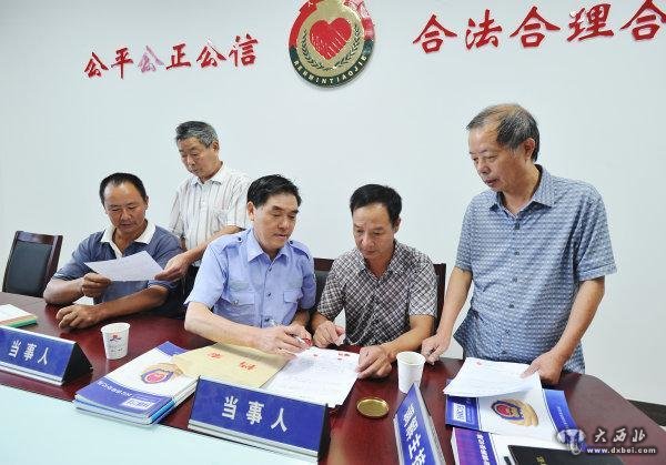 諸暨市楓橋派出所退休民警楊光照(中)當起“老娘舅”。徐德文攝