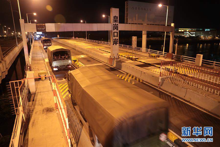 大西北網訊 中國人民解放軍駐香港部隊8月29日凌晨開始,組織進駐香港以來第22次輪換行動。這是輪換陸軍部隊通過皇崗口岸。新華社發(原俊敏攝)