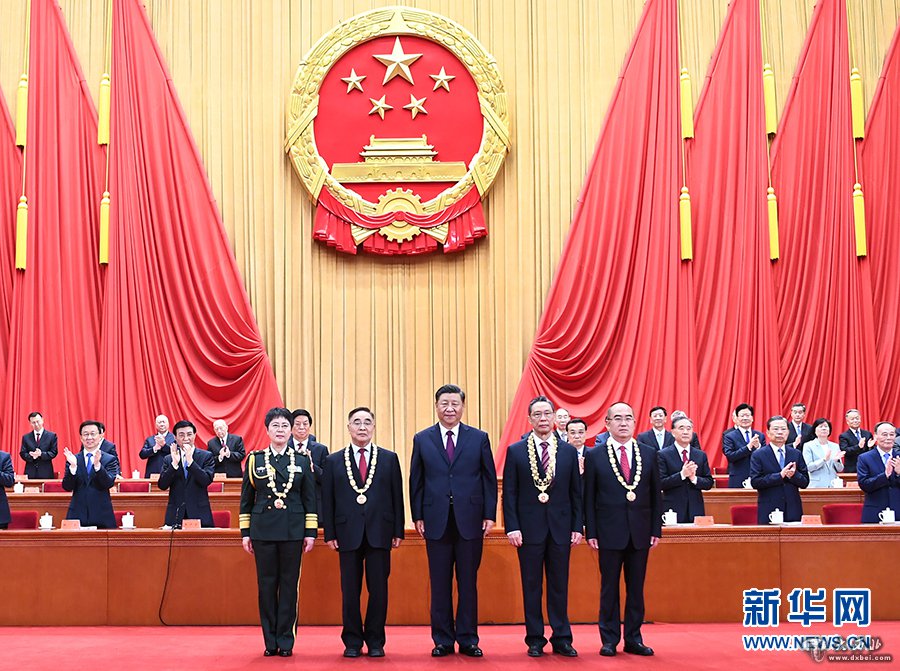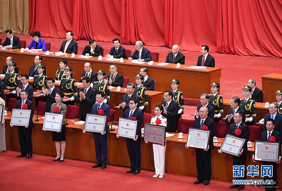 李克強(qiáng)主持大會(huì),栗戰(zhàn)書宣讀主席令,王滬寧宣讀表彰決定,汪洋、趙樂際、韓正、王岐山出席。