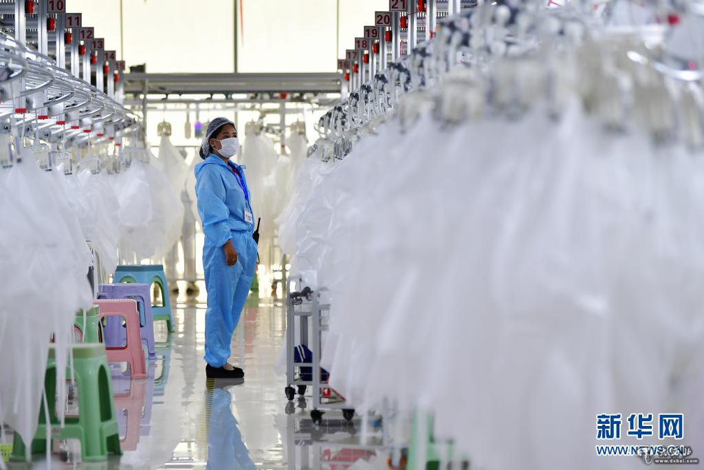 在甘肅臨夏回族自治州積石山縣,依托東西部扶貧協作平臺引進的服裝加工企業甘肅拓奇扶貧車間的員工在服裝加工生產線上作業(2020年8月9日攝)。新華社記者 陳斌 攝