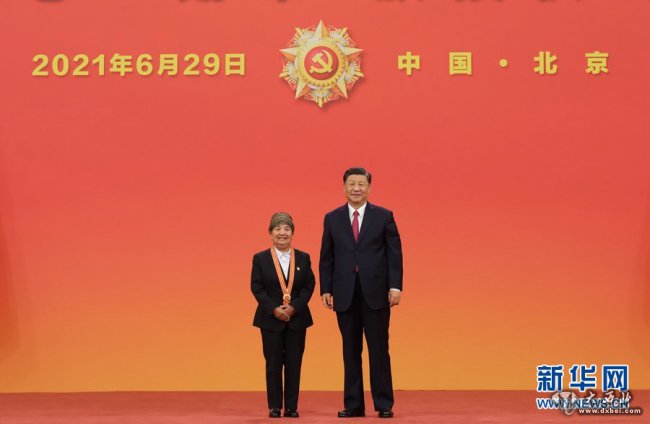6月29日,慶祝中國共產黨成立100周年“七一勛章”頒授儀式在北京人民大會堂金色大廳隆重舉行。中共中央總書記、國家主席、中央軍委主席習近平向“七一勛章”獲得者馬毛姐頒授勛章。新華社記者 李學仁 攝