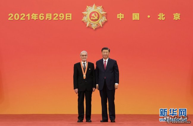 6月29日,慶祝中國共產黨成立100周年“七一勛章”頒授儀式在北京人民大會堂金色大廳隆重舉行。中共中央總書記、國家主席、中央軍委主席習近平向“七一勛章”獲得者崔道植頒授勛章。新華社記者 李學仁 攝