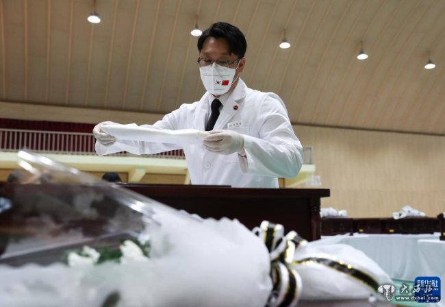 9月1日,在韓國仁川,韓方工作人員將志愿軍烈士遺骸入殮。