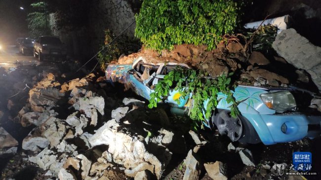 9月7日,在墨西哥格雷羅州阿卡普爾科,車輛在地震中受損。