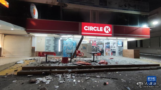9月7日,在墨西哥格雷羅州阿卡普爾科,一家便利店所在的建筑在地震中受損。