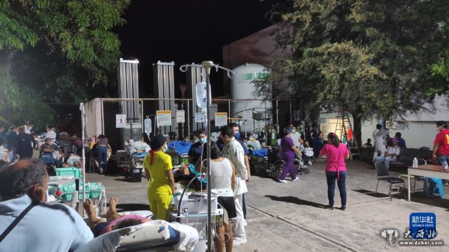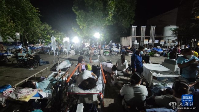 9月8日,在墨西哥格雷羅州阿卡普爾科,一家醫院的病患和醫護人員在地震發生后轉移到室外空地。