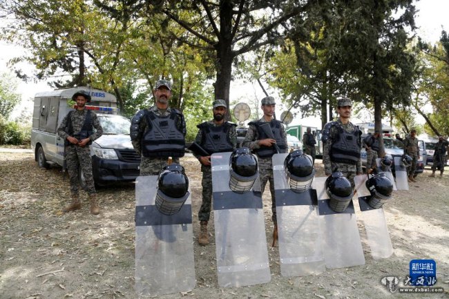 4月11日,安全人員在巴基斯坦首都伊斯蘭堡的國民議會大樓外警戒。新華社發(艾哈邁德·卡邁勒攝)