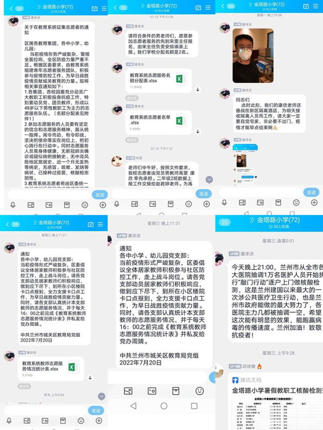 7月8日以來,蘭州疫情防控形勢異常嚴峻。為堅決打贏新一輪的疫情防控戰,十九中教育集團金塔路小學師生家長積極響應上級號召,嚴格落實防控工作,群策群力,多措并舉,齊心協力,為抗戰疫情作出貢獻。
