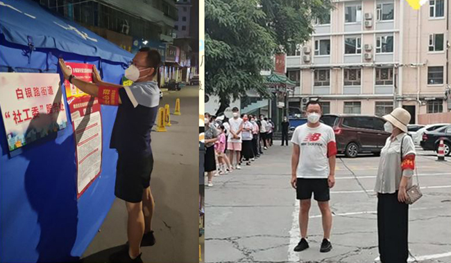 童詩涵爸爸,7月17日晚上11點多,當接到要求選派人員下沉參與防疫的通知后,他像所有志愿者一樣穿著紅馬甲,佩戴中心發放的志愿者胸牌。紅色的宣傳標語在疫情防控的第一線迎風飄揚,他成為銅墻鐵壁的"守門員〞。