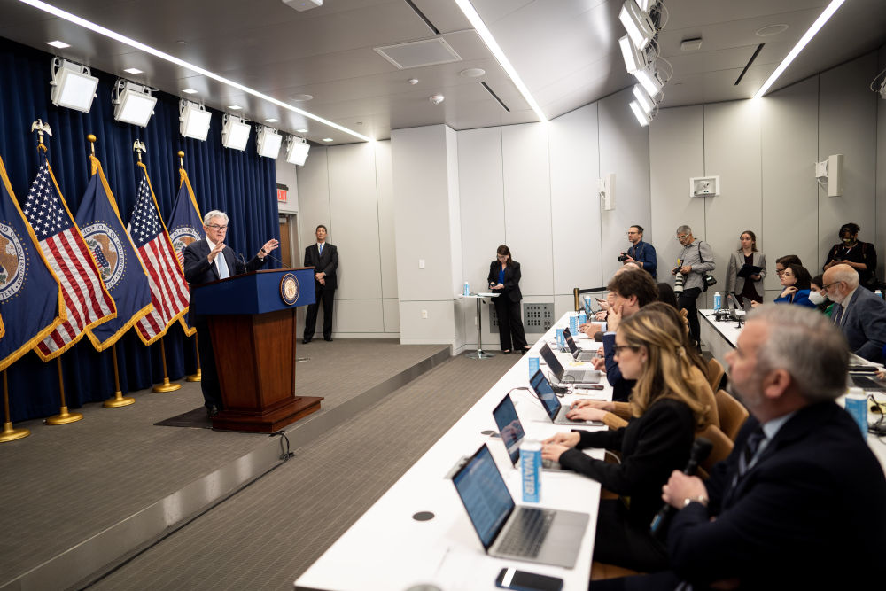 3月22日,美國聯(lián)邦儲備委員會主席鮑威爾在華盛頓出席新聞發(fā)布會。(新華社記者劉杰攝)