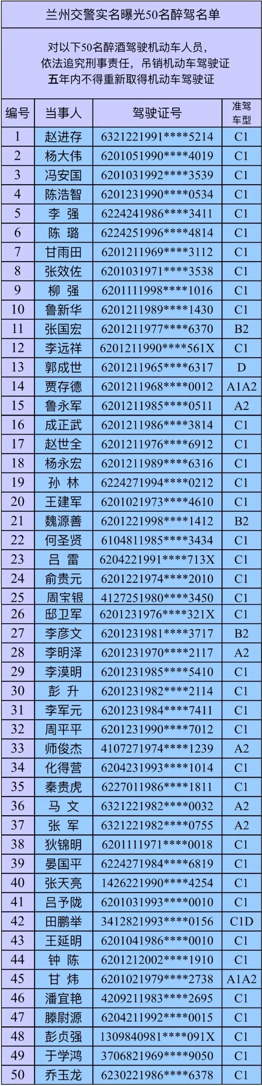 交警每天都在強調“喝酒不開車,開車不喝酒”。盡管如此,還是有部分駕駛員不聽勸!在違法邊緣瘋狂試探。今天,蘭州公安交警實名曝光50名醉駕人員。
