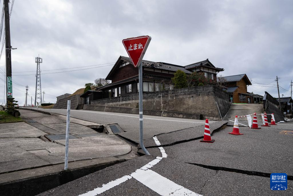 1月2日,在日本石川縣羽咋郡,道路被地震損壞。新華社記者 張笑宇 攝