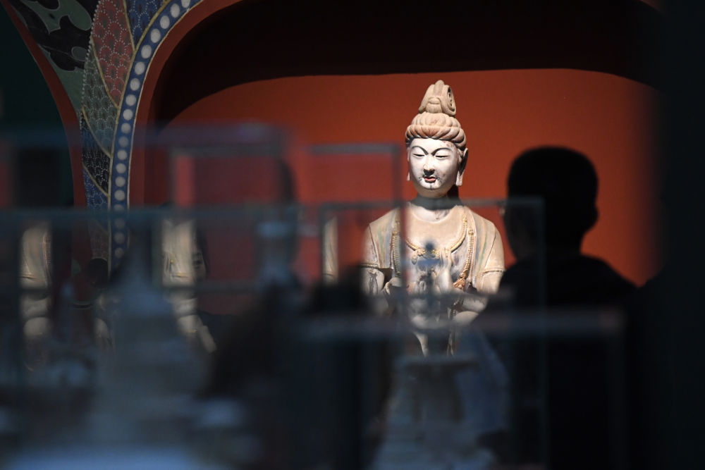 觀眾在敦煌研究院蘭州分院敦煌藝術(shù)館參觀(2023年4月5日攝)。新華社記者陳斌攝