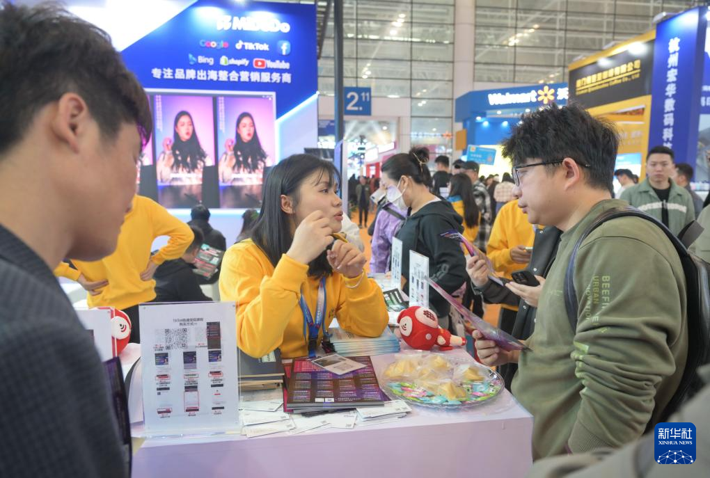 3月18日,客商在第四屆中國(guó)跨境電商交易會(huì)現(xiàn)場(chǎng)交流。