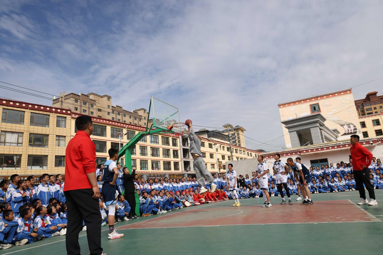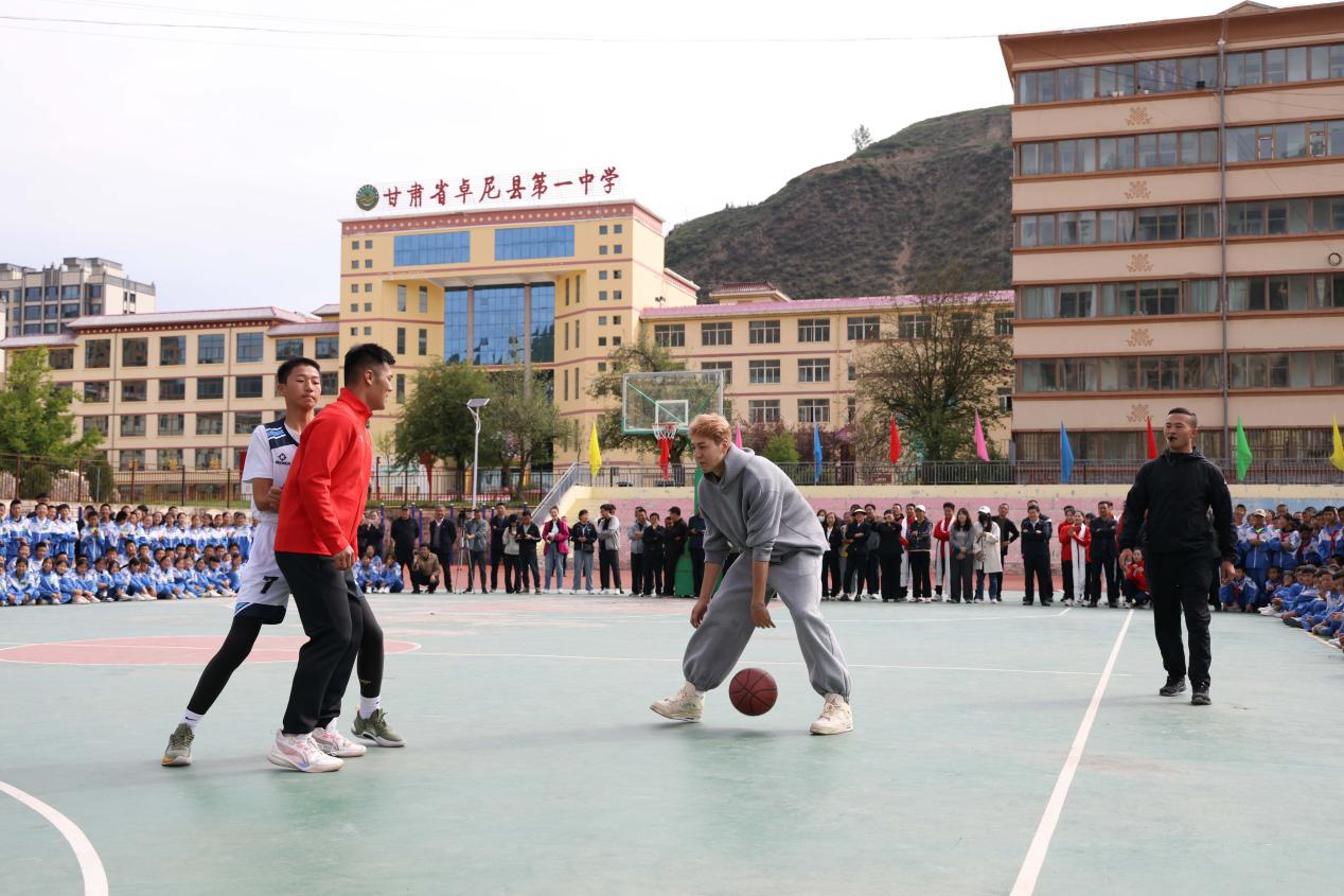“注意傳球”“回防再快一點”“投籃姿勢不錯,好球”……6月13日,一場別開生面的校園籃球友誼賽在甘肅省甘南藏族自治州卓尼縣第一中學的籃球場上打響,與平日不同的是,參賽隊員中交流最為積極的不是當地學生,而是來自新疆廣匯飛虎俱樂部的專業籃球運動員西爾扎提·賽買提。