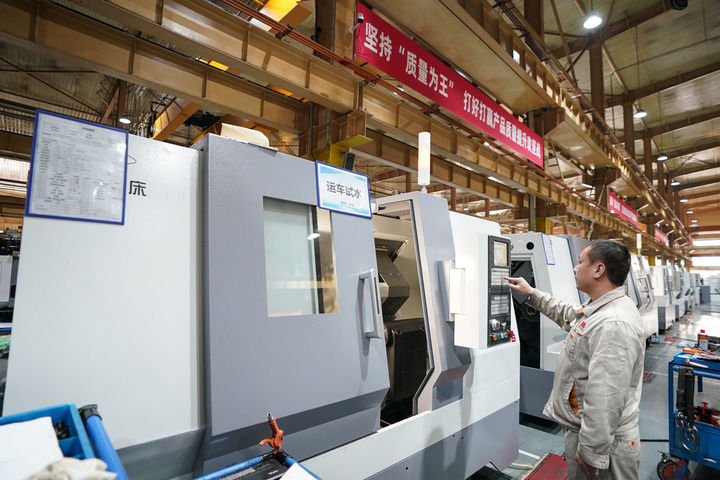 通用技術(shù)集團沈陽機床的工人在車間工作(2023年2月14日攝)。新華社記者 潘昱龍 攝