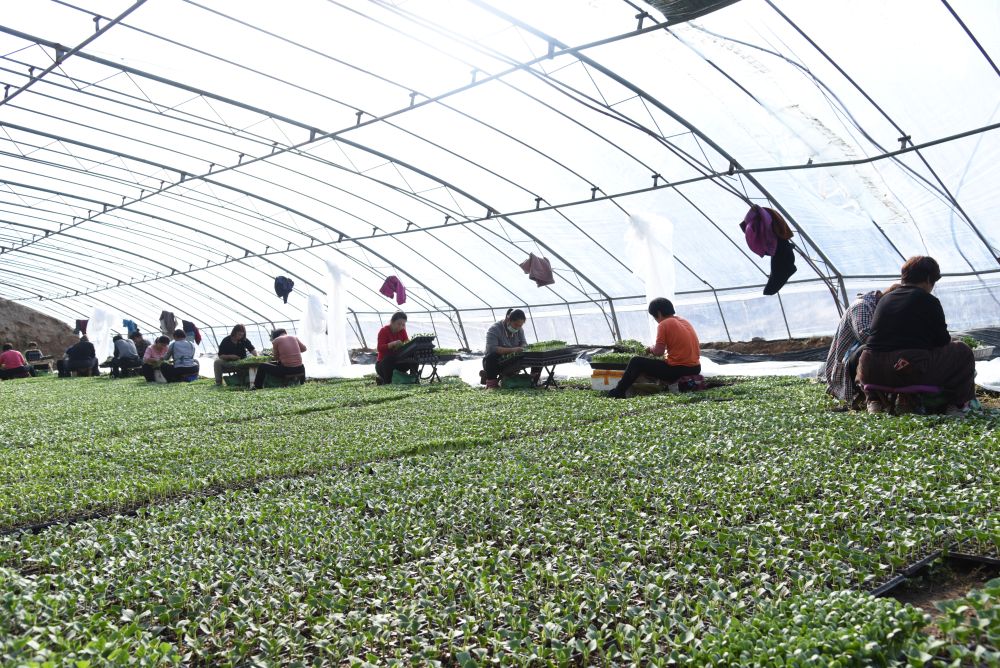 育苗溫室內工人正在忙碌。新華社記者崔翰超攝
