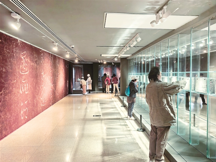 圖為觀眾在仔細觀賞肅府本《淳化閣帖》刻石。