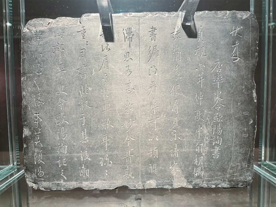 圖為肅府本《淳化閣帖》刻石之一,刻有“唐率更令歐陽詢書”。